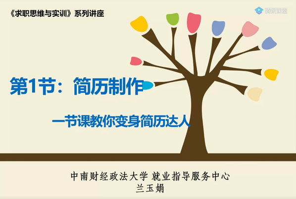 系列讲座第一讲为《简历制作》,国家二级职业咨询师、GCDF全球职业规划师、BCC生涯教练、湖北省创业指导SYIB授证讲师,中南财经政法大学就业指导服务中心副主任兰玉娟博士应邀担任主讲。学校2021届毕业生、毕业班辅导员(班主任)、就业指导课老师、就业干事参加直播学习。